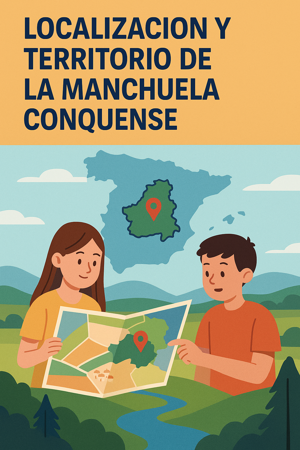 La unidad explica la localización geográfica de la Manchuela Conquense, situada entre Madrid y Valencia, en la provincia de Cuenca. Describe su relieve como una zona de transición entre el Sistema Ibérico y la submeseta Sur, marcada por los ríos Júcar y Cabriel. Reúne 33 municipios y 45 núcleos de población, con una superficie de 2.601 km² y una densidad de 14,7 hab/km². Analiza la variedad de paisajes, desde pinares en la Serranía hasta llanuras manchegas, y la problemática de la despoblación. Propone actividades educativas sobre mapas, orografía, demografía y proyectos de desarrollo local, vinculadas a la LOMLOE.