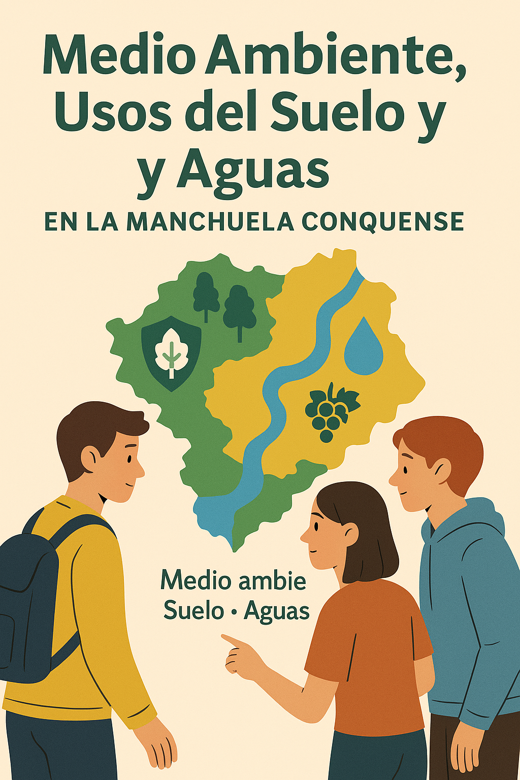 Presenta la riqueza medioambiental de la comarca, con espacios protegidos como las Hoces del Cabriel y recursos hídricos abundantes. Describe los principales usos del suelo: agrícolas, forestales y ganaderos, junto con sus implicaciones en la economía local. Subraya el valor de la diversidad paisajística y los recursos para nuevas actividades sostenibles. Muestra la importancia de la gestión de residuos y la protección del entorno natural. Destaca oportunidades en turismo, agroindustria y energías renovables.